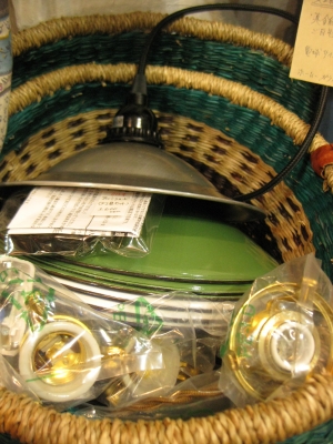 ホーローのランプシェードもホワイト・グリーン在庫ありますので