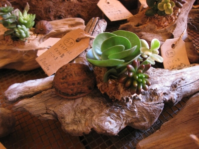 堀りっと穴を開けまして、多肉植物を植えると可愛いのですよ!