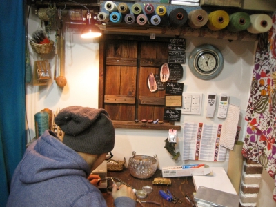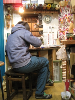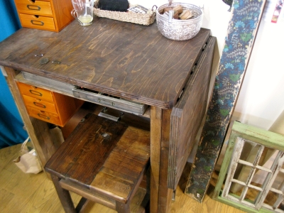 お店を造った時につくっておいた小窓と、端材で作ったスツールが似合います。