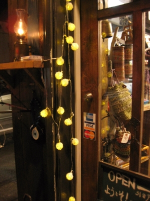 日が落ちた頃から点灯しますので、お店入り口が変わり映えしています。