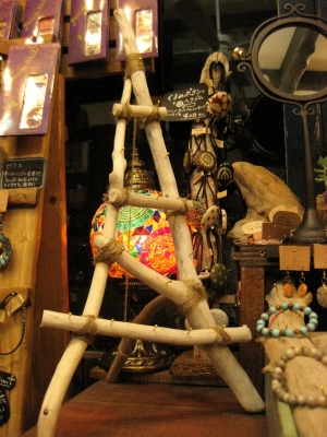 流木で、座頭市の真似をしながら作ったアクセサリーラックです。