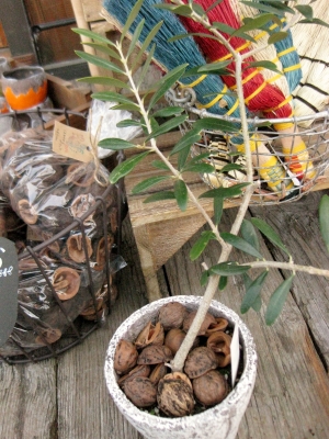 割ったくるみの小さい殻にお花のアレンジをしたり