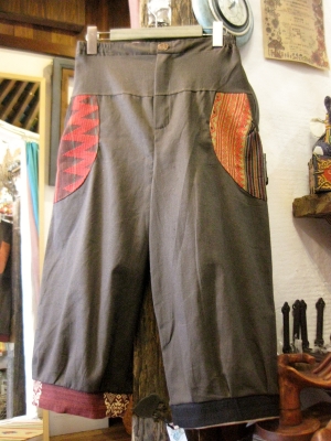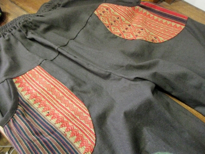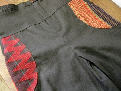 ポケットと裾の部分にナガ族の伝統布を使っているパンツです。