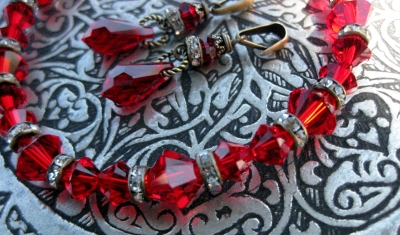 赤いスワロフスキーでお友達とお揃いのイヤリングを作って欲しい