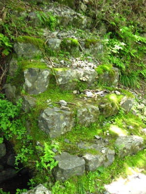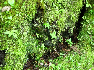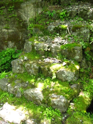 山道の苔むした壁。鮮明さに欠けますが