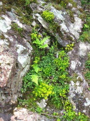岩の間に育つ植物。