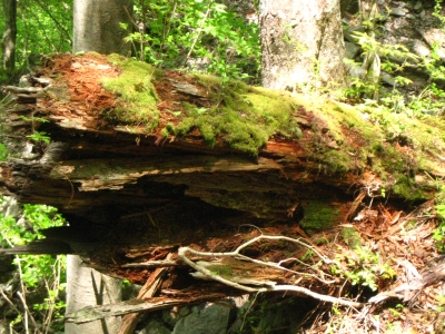 折れた大木と、そこに育つ植物。