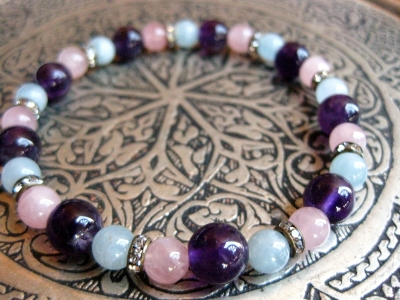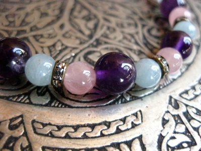 ディープローズクォーツ・アメジスト・アクアマリンの組み合わせ。