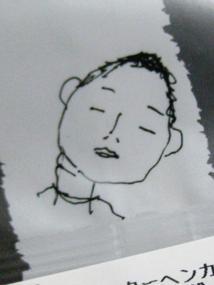 私がその辺にあったお菓子の包装に震える手で描いた似顔絵。(寝起のため力入らず。)