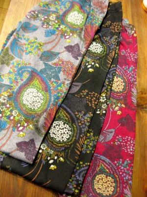 柄はフラワーやペイズリー等々のボタニカル柄プリントです。