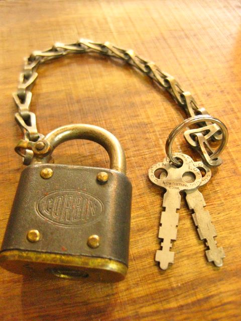 古い型のダイヤル式南京錠なので、鍵は必要ないよ。