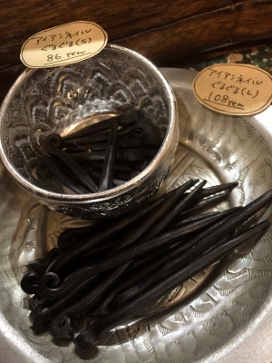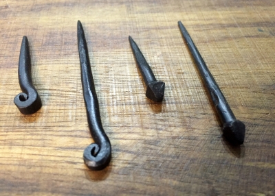 鉄を叩いて、1本ずつ造られる 頭の部分をデザインされた釘なんです。