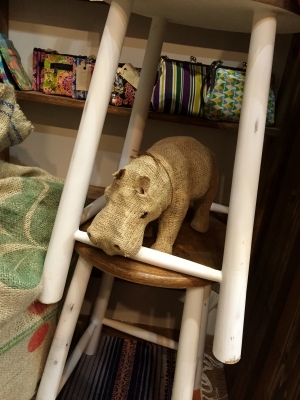 レジ前の棚付近では、大口を開けたカバ氏とゴールド魚がおりまして、
