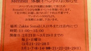 mehndiMehndi(メヘンディ)のプチ体験会 こんばんわ。 今日は暖かい一日でしたね。 お天気も良かったのでお出掛け日和だったんじゃないでしょうか。 唐突ですが この度 Mehndi(メヘンディ)のペイントをSomaliで始めることに致しました。 昨年夏頃ブログで小さくご紹介させて頂き... 2015.02.07mehndi