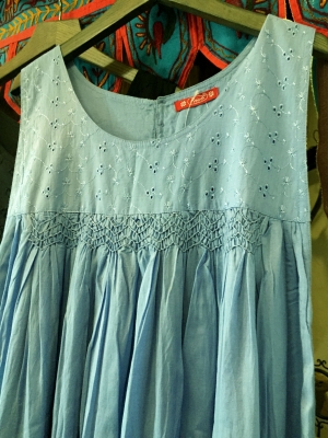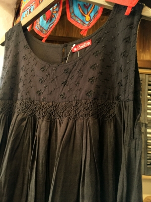 胸元は同色の細かい刺繍と