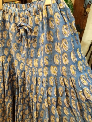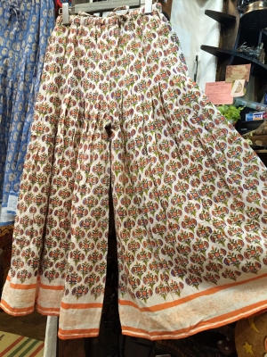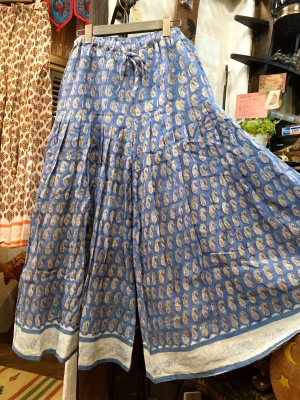 コットンとブロックプリントのワイドパンツです。