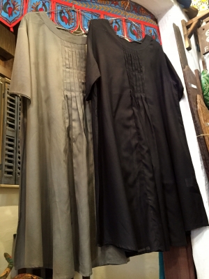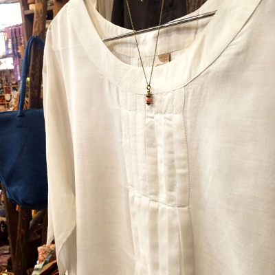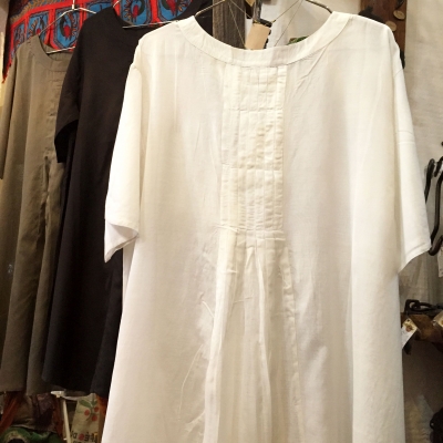 中心に長めのタックが入ることで縦長のラインが強調されて