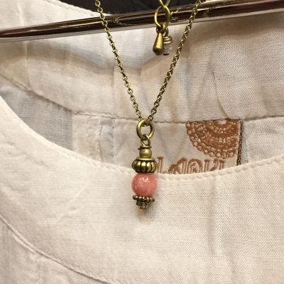 一緒につけているペンダントはアルゼンチン産インカローズ。