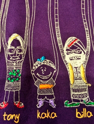 こちらバックプリントでは、ボタンが縫い付けられていたり、