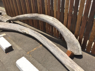 ちなみに奥に見える丸太は、小民家が解体されたときの古材なんですけど