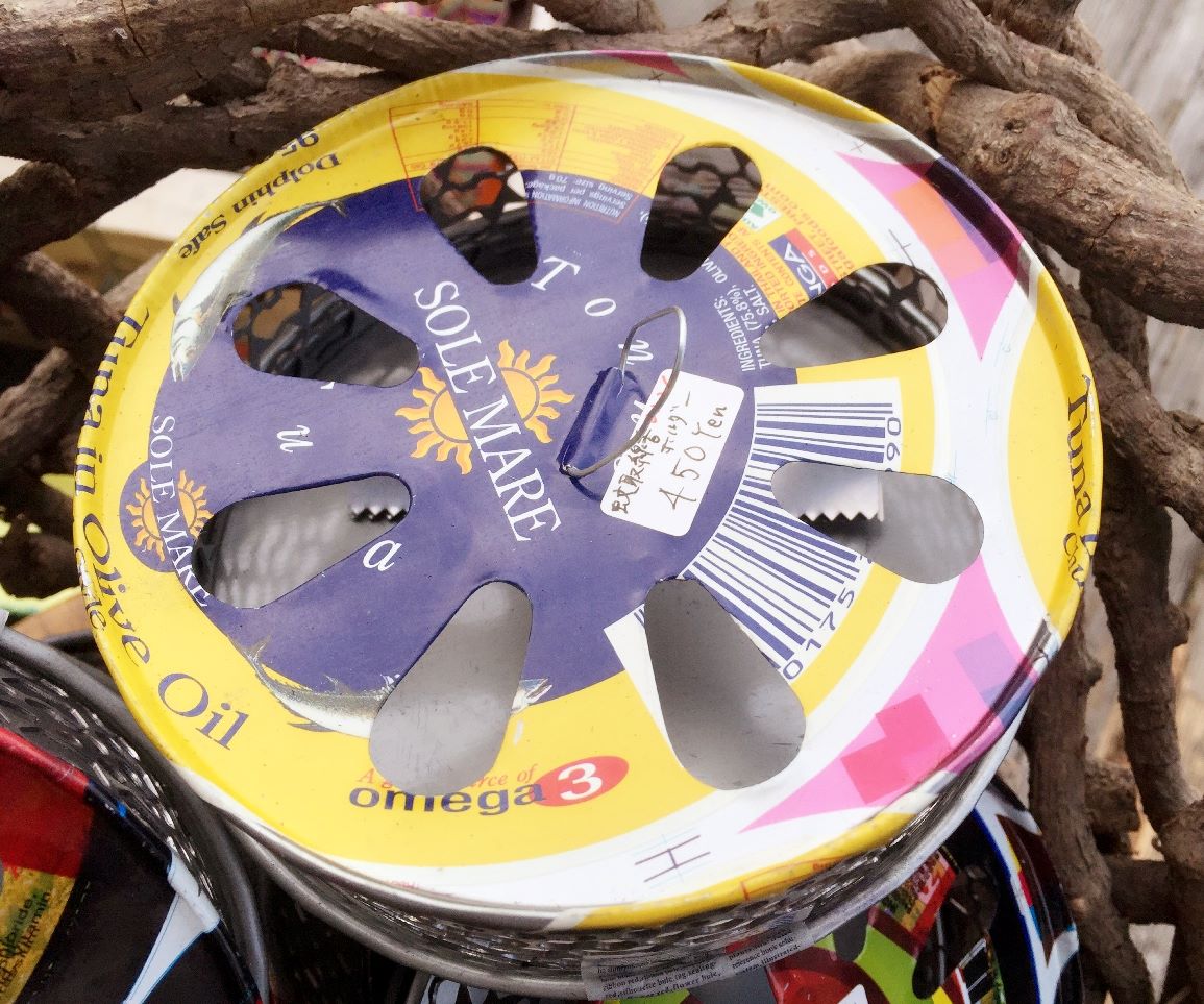 リサイクルのアルミ缶を使った蚊取線香ホルダー。