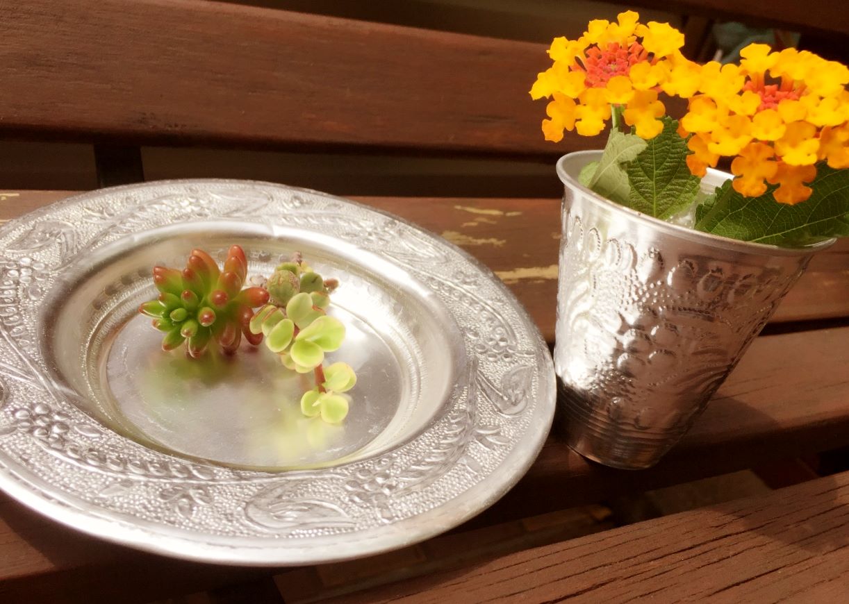 ほんのりとホワイトシルバーに輝く器達。