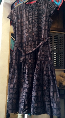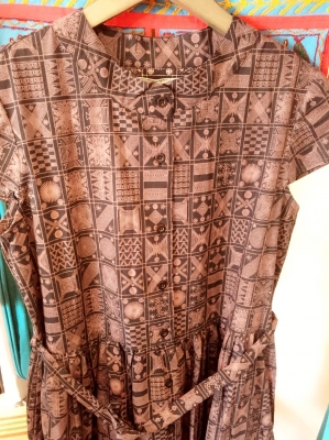 切り返しっぷりも、プリント柄も落ち着いた雰囲気。