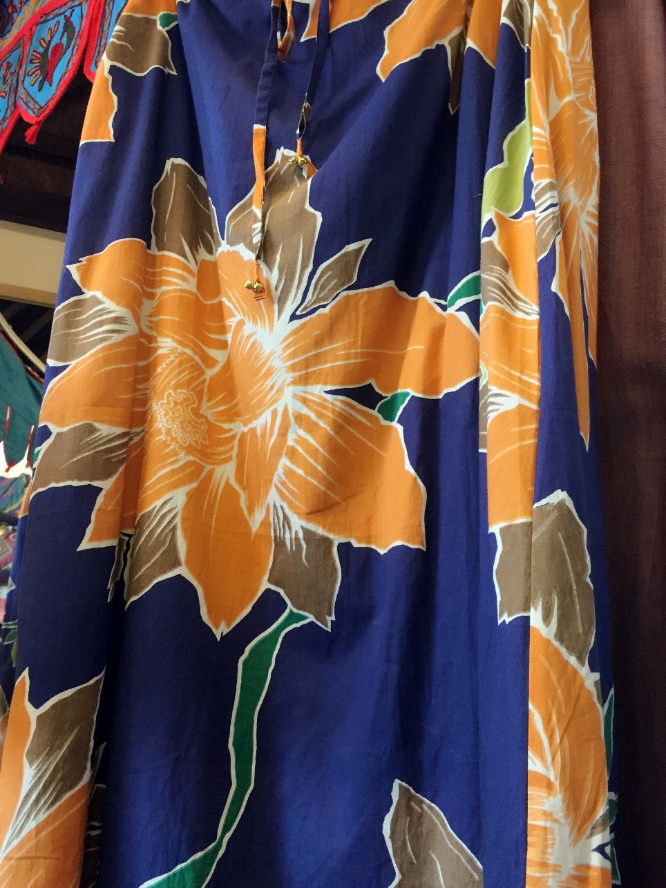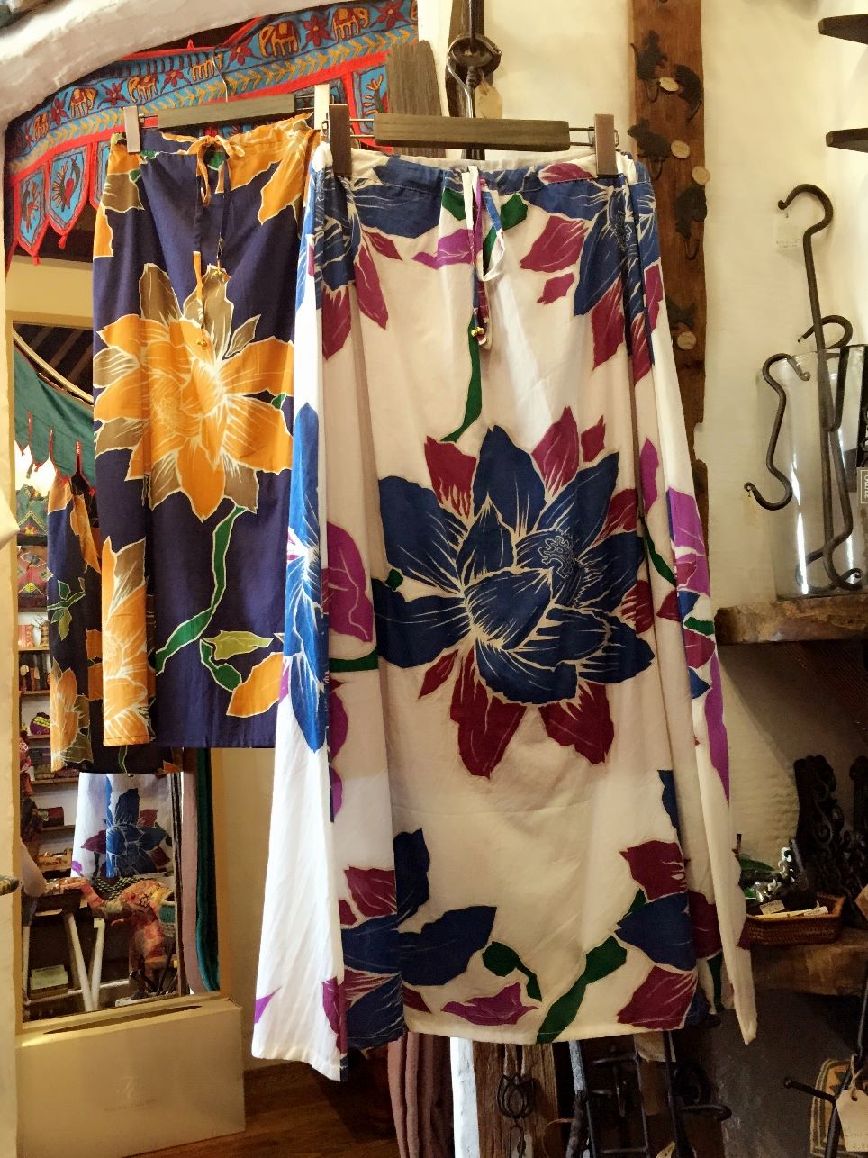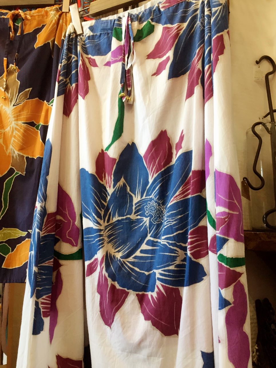 大きいハスの花が描かれたロングスカートです。