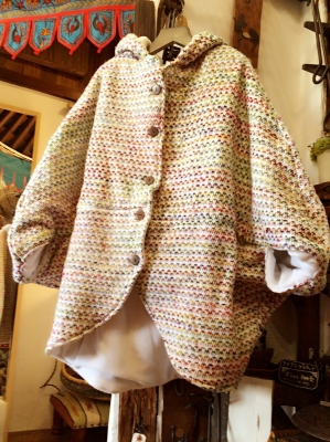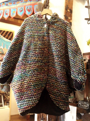 ドルマンスリーブの上からも羽織れる形の便利なコートです。