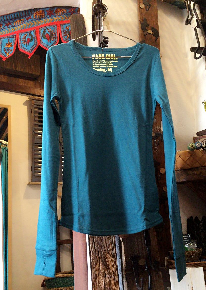 ご好評いただいているクルーネックのフィンガーホール付Tシャツ。