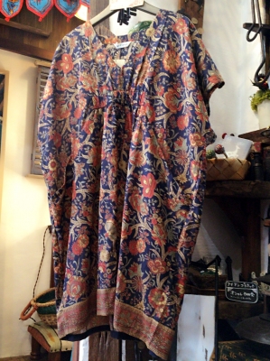 美しい色味とブロックプリント風のエスニック柄が印象的です。