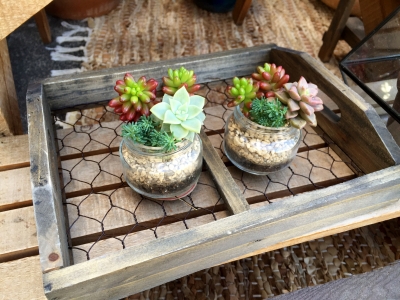 多肉を並べているこのワイヤーボックス