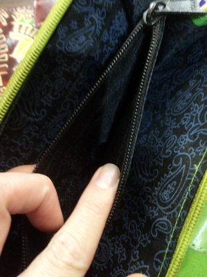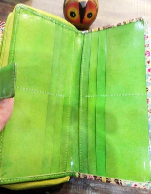 広いチャックで、小銭も出し入れ楽ちんなのです。