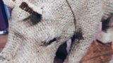 彼女を覆っているストールの下にちょこっと出ている白いものは