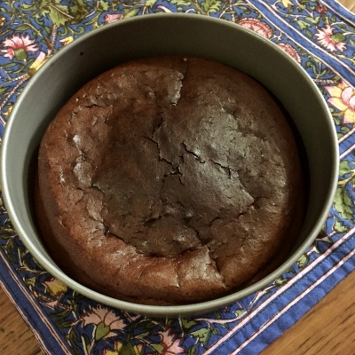 チョコレートと卵だけで焼けるとってもお手軽なケーキ。