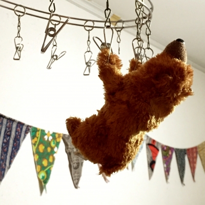 ついに干されたくまさん。