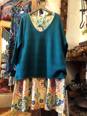こんな風に、ゆったりとしたトップスと重ねていただくのも素敵なんじゃないでしょうか。