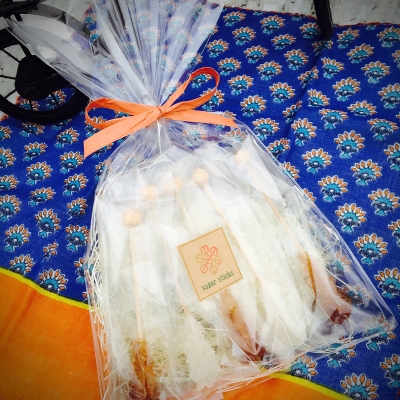 袋の中に1本1本個包装になったシュガースティックが入っているので