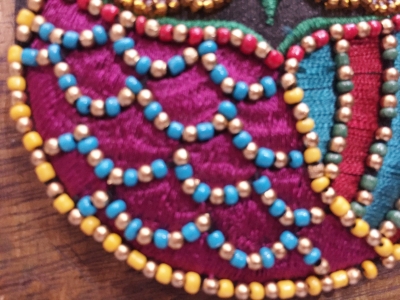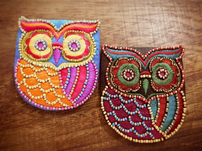 ゴージャスにビーズ&刺繍でふくろうを表現されてまして