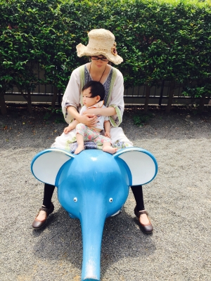 ぞうさんに乗るも、完全に心ここにあらずです。