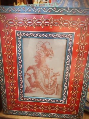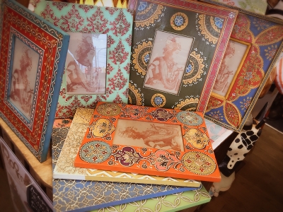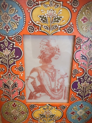 凹凸の有る、カラフルな色彩のハンドペイントが特徴。