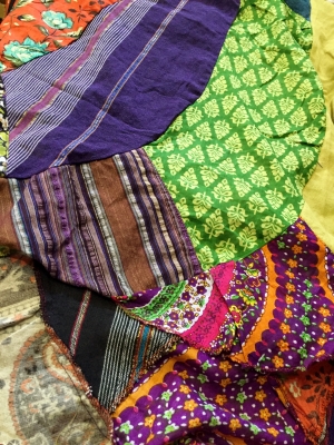 いろんな色柄の布が使われているので、カラフルで個性的。