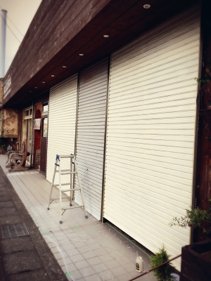 今朝方のこと、お店のシャッターをペンキ塗りしていたところ