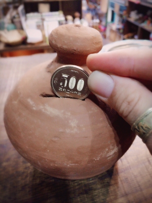 口はギリギリ500円玉サイズで、500円玉貯金向けなのかなぁと。