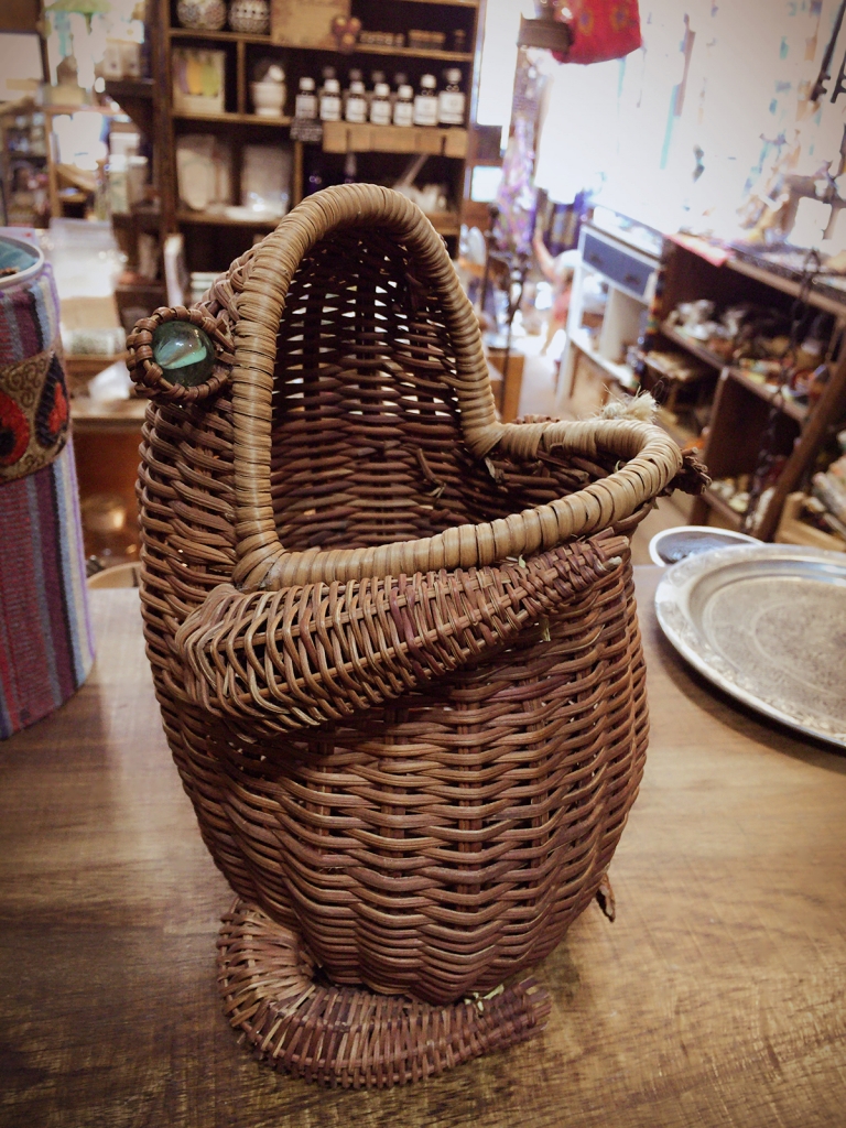 ユーモアな空気を持った、ぽってりしたバスケットです。