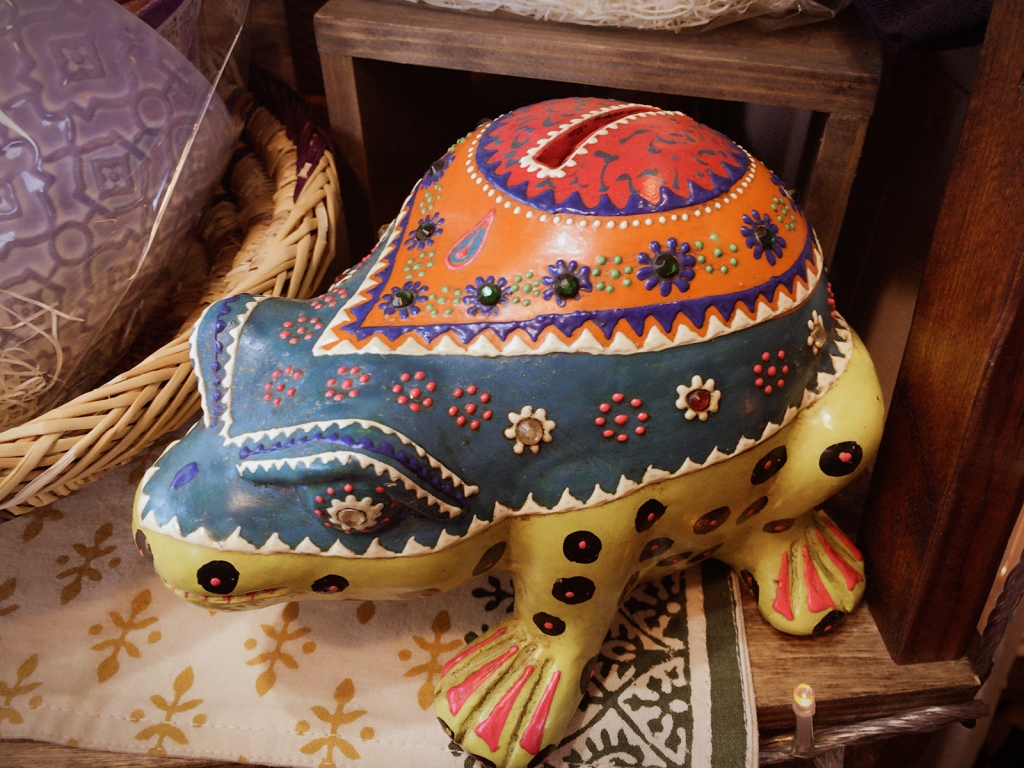 さて今日は店内のカエル雑貨を