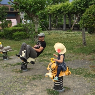 ちなみに、旦那さんが乗っている動物はパンダなんですけど