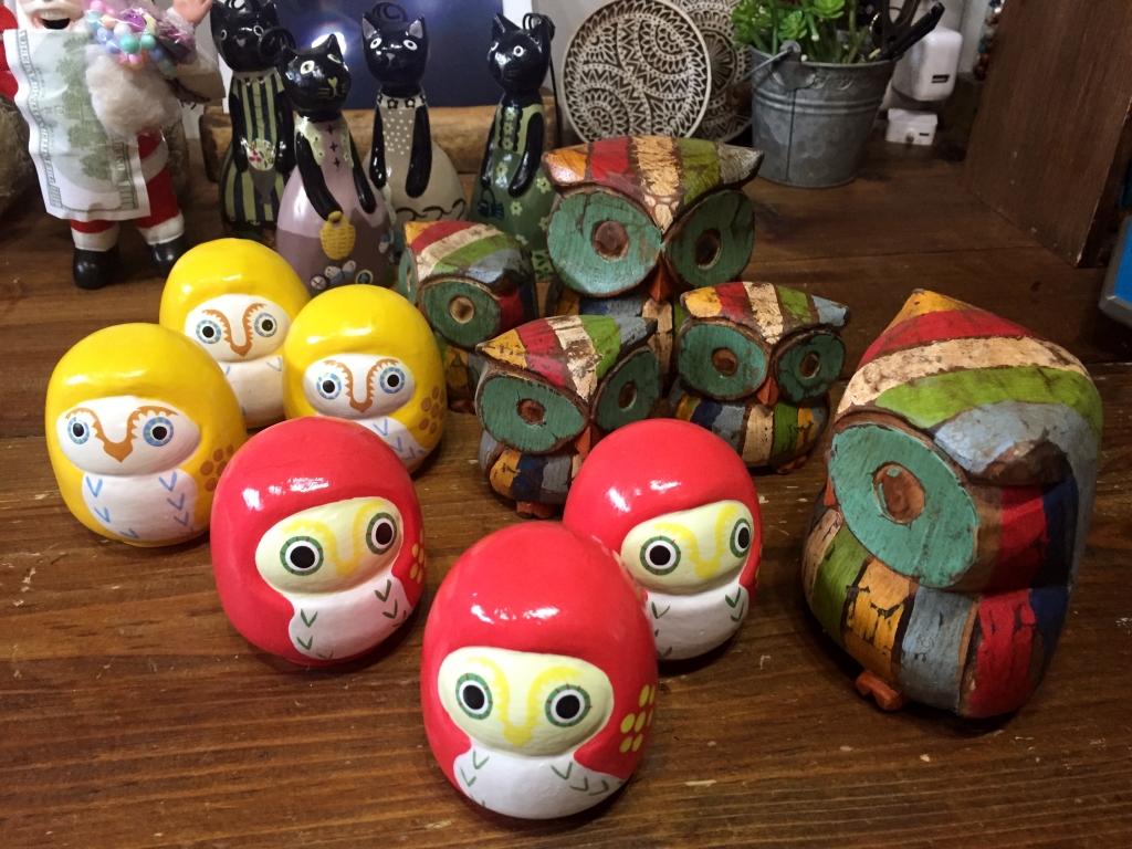 シャビーふくろう、だるまふくろうさんたちでございます。