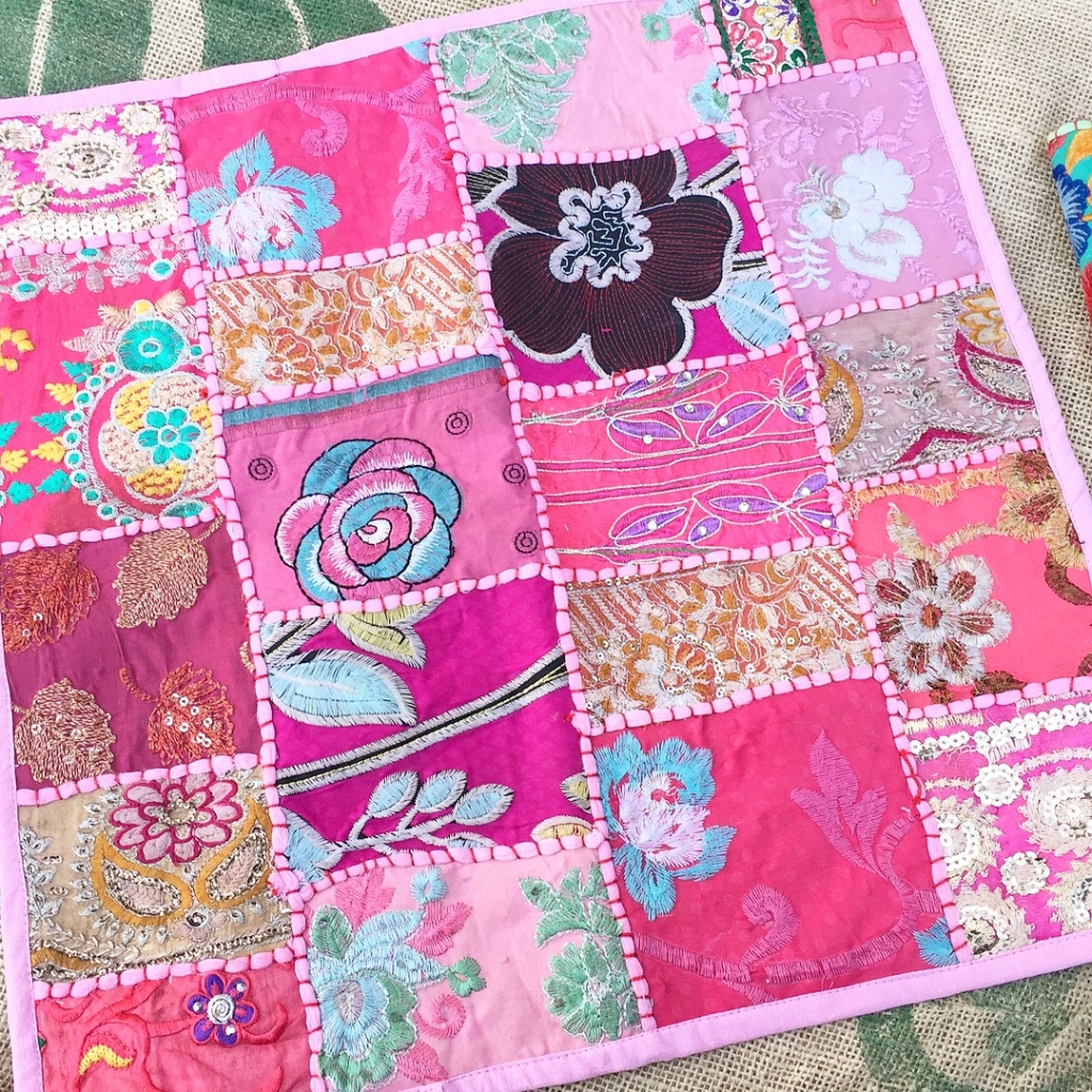 ゴールドの糸や、スパンコール、ミラーを使って刺繍しているので
