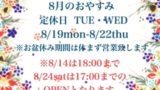 それ以降は、火曜・水曜の定休日のみとなりますので